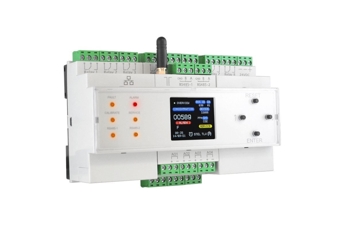 The Evikontroll μGas Control Panel is a central controller engineered for advanced gas detection systems. It connects to multiple Evikon gas transmitters via RS-485 (Modbus RTU) and manages sensor data, alarms, outputs, and integration with facility systems. The mGAS unit is ideal for medium to large installations in industrial parks, HVAC systems, cold storage, laboratories, parking garages, and similar environments requiring robust gas monitoring.